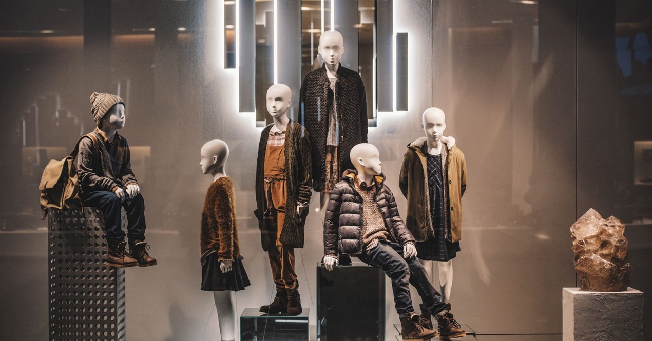 Det er flottere med et vindu som harmonerer i farger og stiler, enn et vindu som viser et sammensurium av stiler og uttrykk. Butikkvinduet skal representere butikken, men trenger ikke å vise frem alle stilarter dere tilbyr samtidig. Velg en look til hver periode for et harmonisk uttrykk i vinduet. Test gjerne å sette sammen en fargekombinasjon hvor dere fordeler inn bruk av fargene i tre deler (70%, 20% og 10%), i tillegg til sort og hvit. 10%-fargen kan gjerne være en skikkelig fargeklatt for en ekstra poppende effekt.