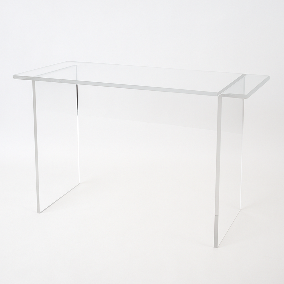 Moderne og minimalistisk skrivebord i 25mm transparent plexiglass. Dette elegante skrivebordet passer like godt på kontoret, i resepsjonen eller i private hjem. Et gjennomsiktig møbel som passer i alle miljø og som ikke tar oppmerksomheten vekk fra andre elementer/møbler.