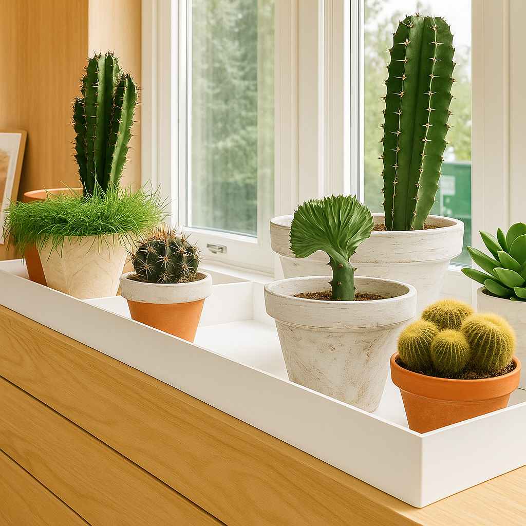 Blomsterbrett, undervanningsbrett, dekorbrett Dekorative, minimalistisk og elegante brett for bruk i vindu, på bordet eller som fat. Kan brukes hele året med sesongens blomster og grønt. Super til å arrangere en grønn oase bordet, samle urtene på kjøkkenet eller bruke det til å så frø av småplanter på. Disse er vanntette.