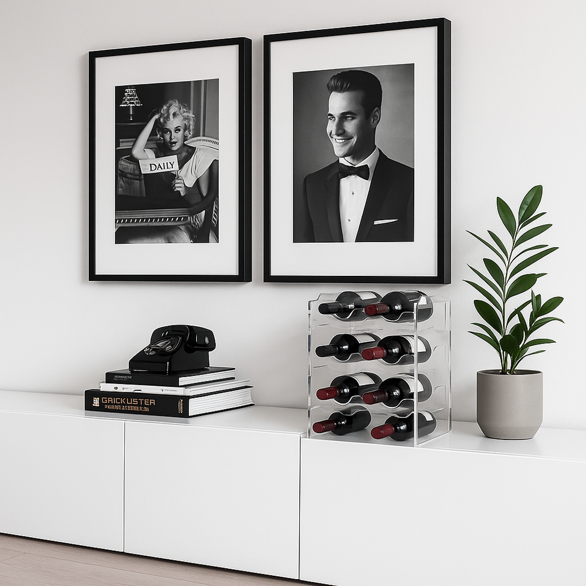 ADA er en serie med display/stativ for flasker produsert i 3 ulike størrelser.Praktisk oppbevaring på benk, bord eller gulv.Produsert i 10mm klar plexiglass