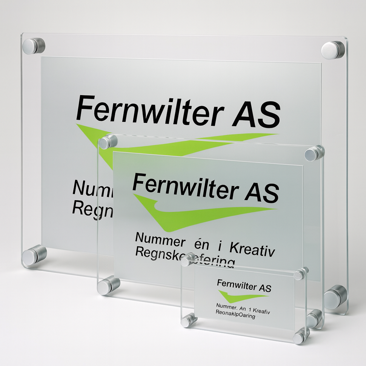 En stilren og elegant skiltserie som dekker alle behov for skilting i bedrifter, bygninger og private hjem. Like godt egnet ute som inne. Skiltene leveres med polerte kanter, avstandsstykker i børstet aluminium.