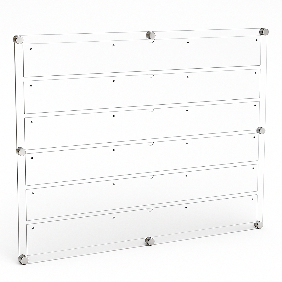 Enkelt å skifte innhold, hver rad vippes lett fra hverandre ved bruk av halvmånespor midt på raden.