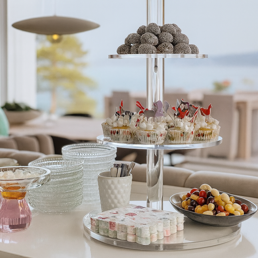 - Størrelse på etasjer fra bunn: 380, 320, 260 og 200mm i dia.
