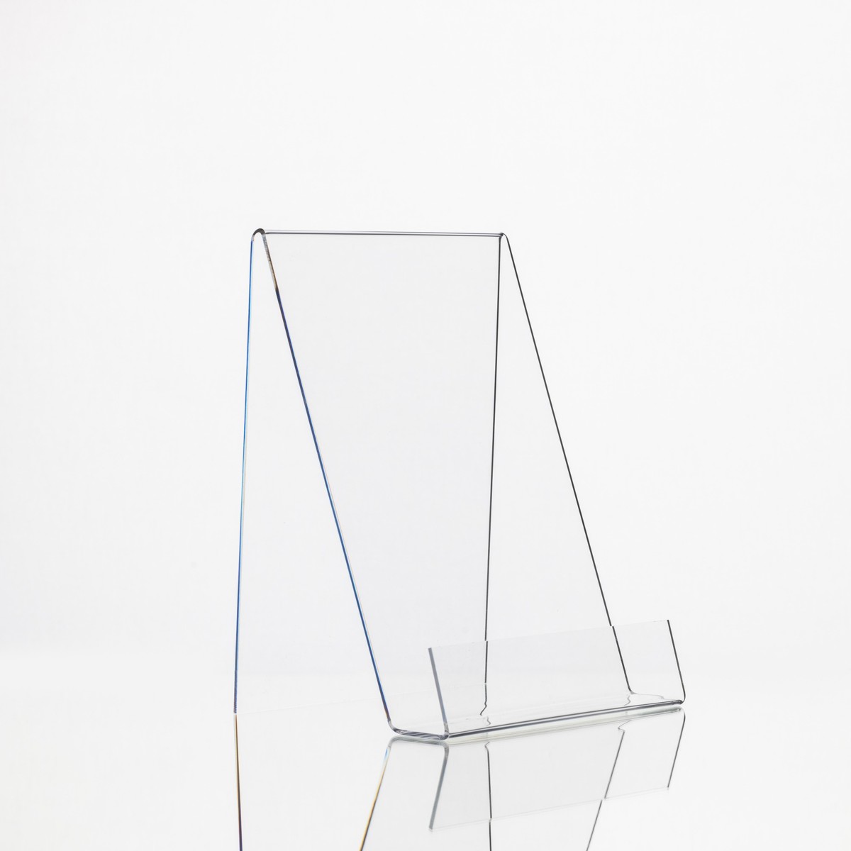 BERGAN brosjyrestativ i plexiglass. Display for brosjyrer plassert på disk/bord.