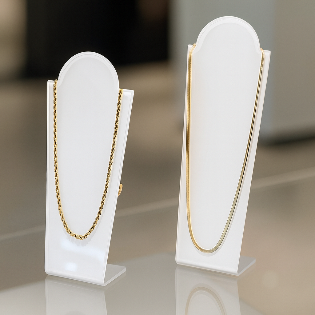 Display for eksponering av kjeder/anheng eller skjerf.Skap en spennende utstilling med profilering i flere ulike størrelser.Klart plexiglass. 2 størrelser.Klar, hvit eller sort matt utførelse.