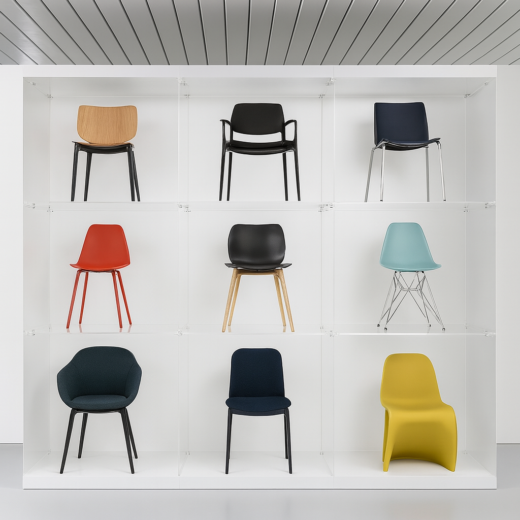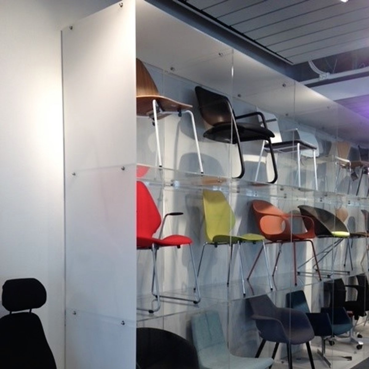 Elegant eksponeringsløsning i plexiglass som passer for profilering/eksponering av de aller fleste type produkter/gjenstander. Bildene viser produktet benyttet som "stol-bar". Løsningen leveres uten bakvegg noe som betyr fleksibilitet mht plassering - inntil vegg, som frittstående møbel eller i vindu.