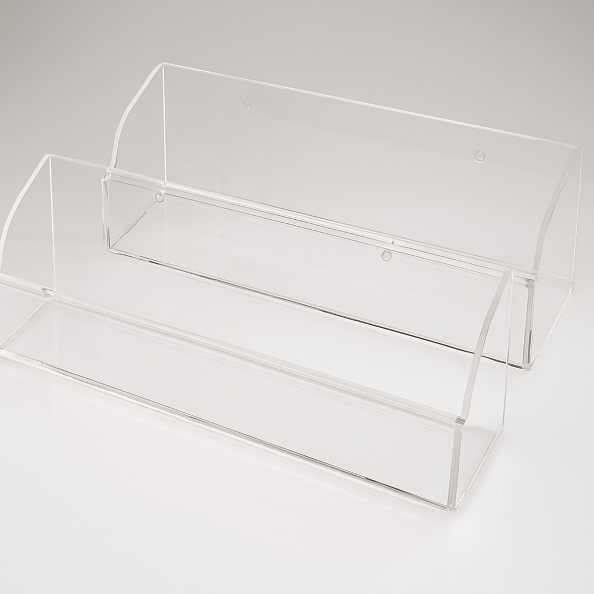 Små, enkle og bruksvennlige oppbevaringshyller med flere bruksområder. Passer til bruk på kontor, møterom og i private hjem. Kan f.eks. monteres på innside av skapdør