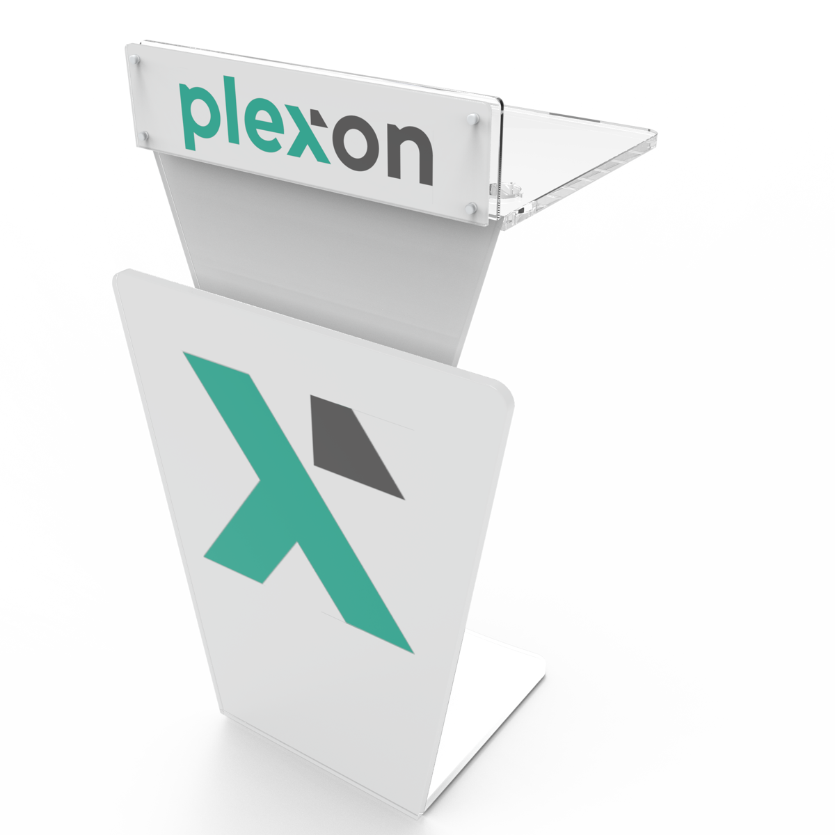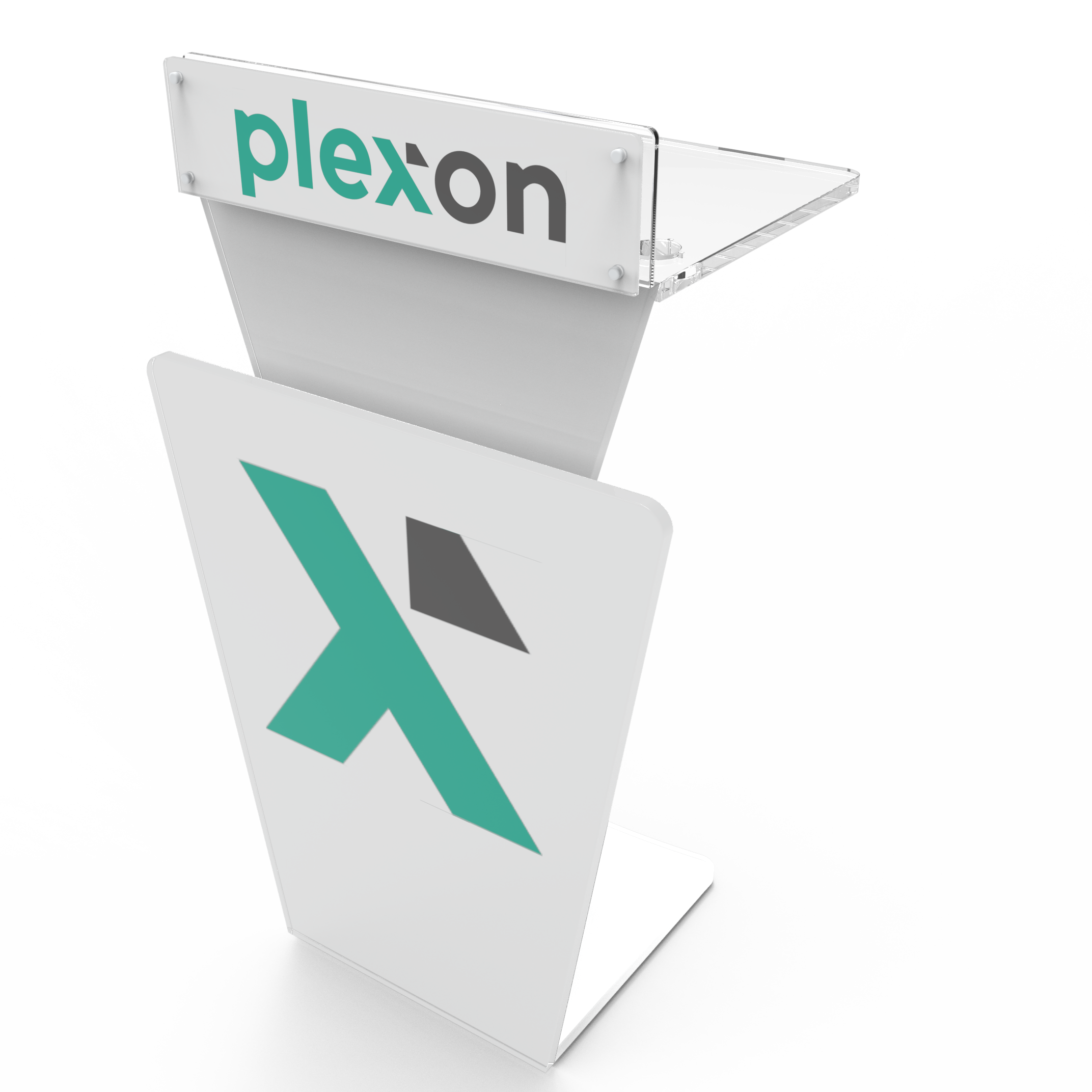 - Topp skilt - for logo/tekst -i 8mm klart plexiglass: BxH 610x150mm festet med 4 stk børstet aluminiums avstandsstykker dia. 19mm. Anbefalt størrelse på logo/tekstfelt: BxH 550x130mm